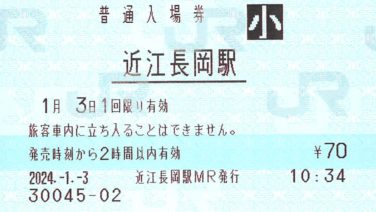 駅めぐり 近江長岡駅 入場券駅スタンプ無し駅舎改札前・みどりの窓口前その他駅前の風景コメント私のX(旧Twitter)の近江長岡駅の投稿はこちら。東海道本線 近江長岡駅です。2024年1月末にJR全線きっぷ売り場は閉鎖され、以後は無人駅となりました。駅スタンプは... 2024.12.22 駅めぐり